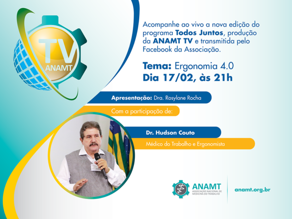No dia 17 de fevereiro, às 21h, a ANAMT realizará a segunda edição do programa Todos Juntos, iniciativa da Associação transmitida ao vivo pela página no Facebook da entidade.