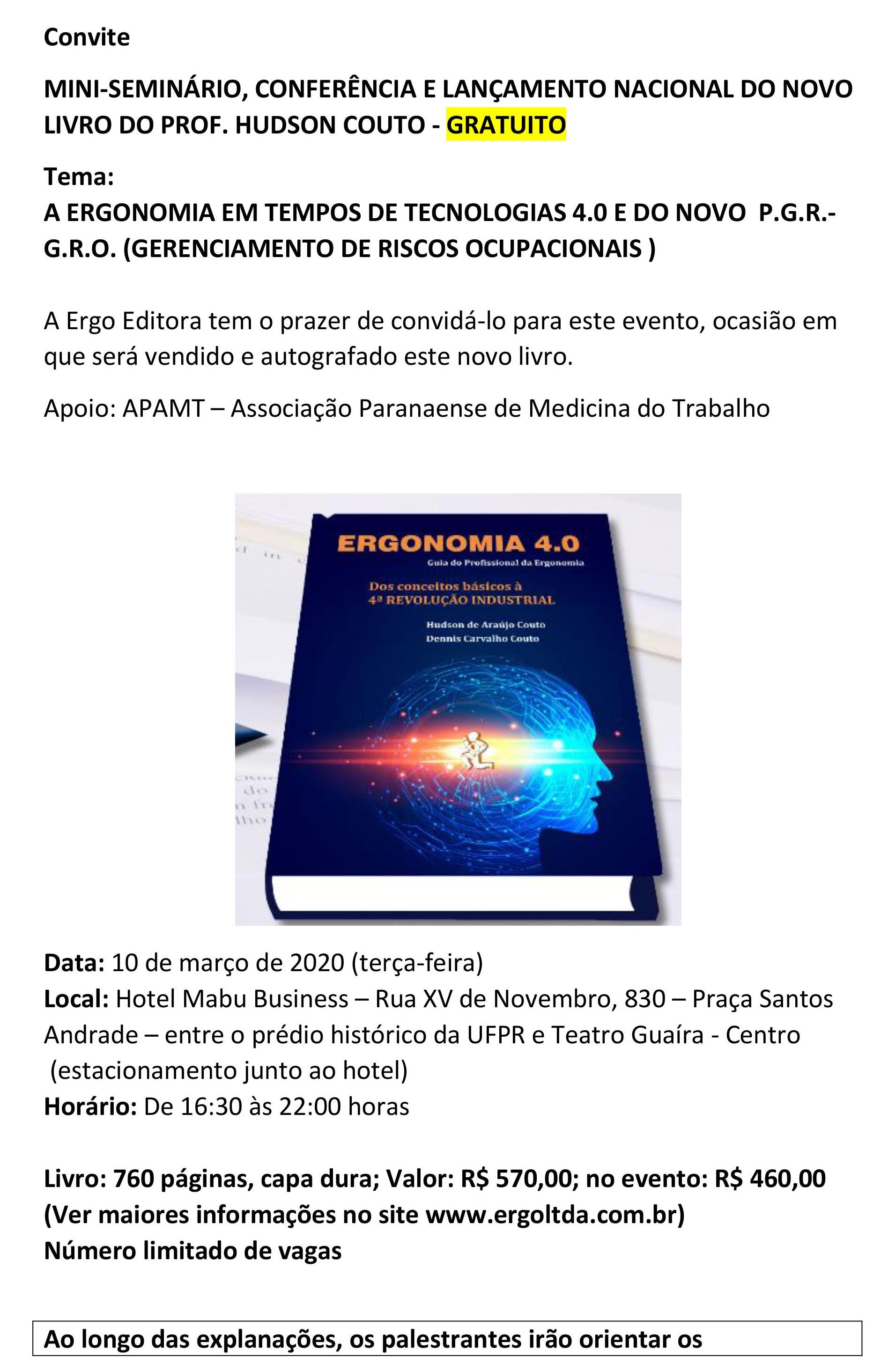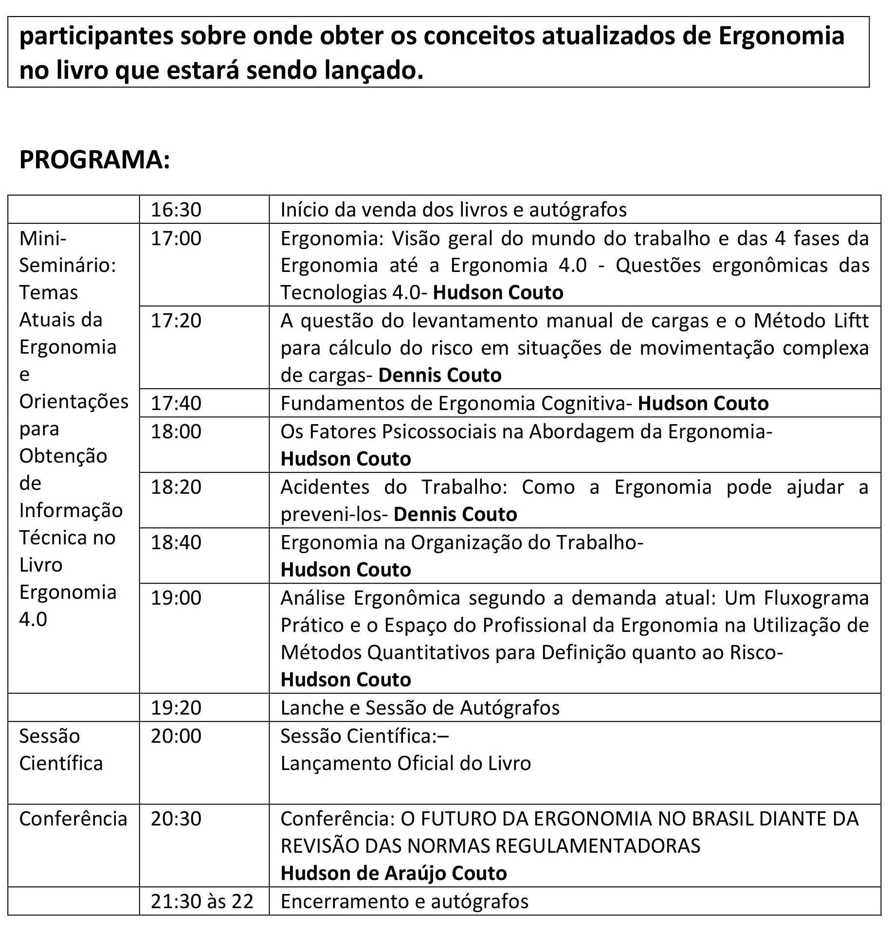 MINI-SEMINÁRIO, CONFERÊNCIA E LANÇAMENTO NACIONAL DO NOVO LIVRO DO PROF. HUDSON COUTO - GRATUITO