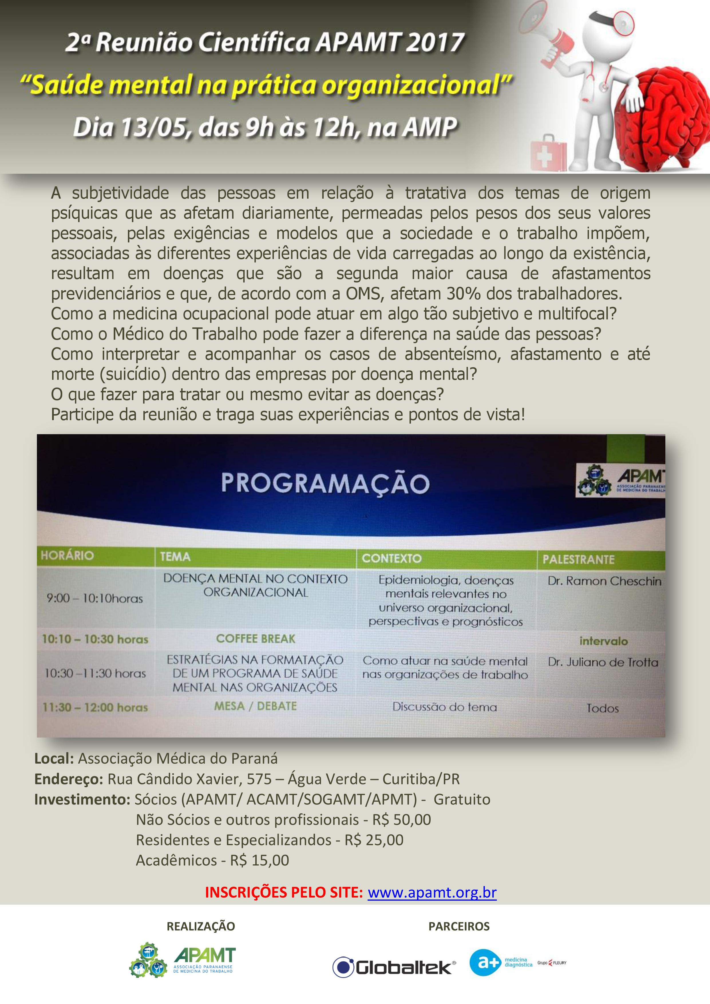 Com o objetivo de congregar os Médicos do Trabalho no Estado do Paraná e também com a intenção de estimular o interesse pela especialidade, sua divulgação e aperfeiçoamento; assim como defender a ética profissional, promover eventos, realizar estudos e manter o intercâmbio com outros colegas da área, foi fundada, em 2 de setembro de 1974... continuar lendo.