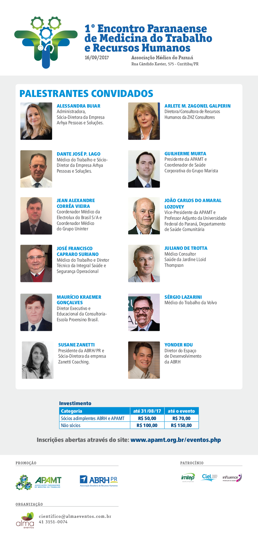 Com o objetivo de congregar os Médicos do Trabalho no Estado do Paraná e também com a intenção de estimular o interesse pela especialidade, sua divulgação e aperfeiçoamento; assim como defender a ética profissional, promover eventos, realizar estudos e manter o intercâmbio com outros colegas da área, foi fundada, em 2 de setembro de 1974... continuar lendo.
