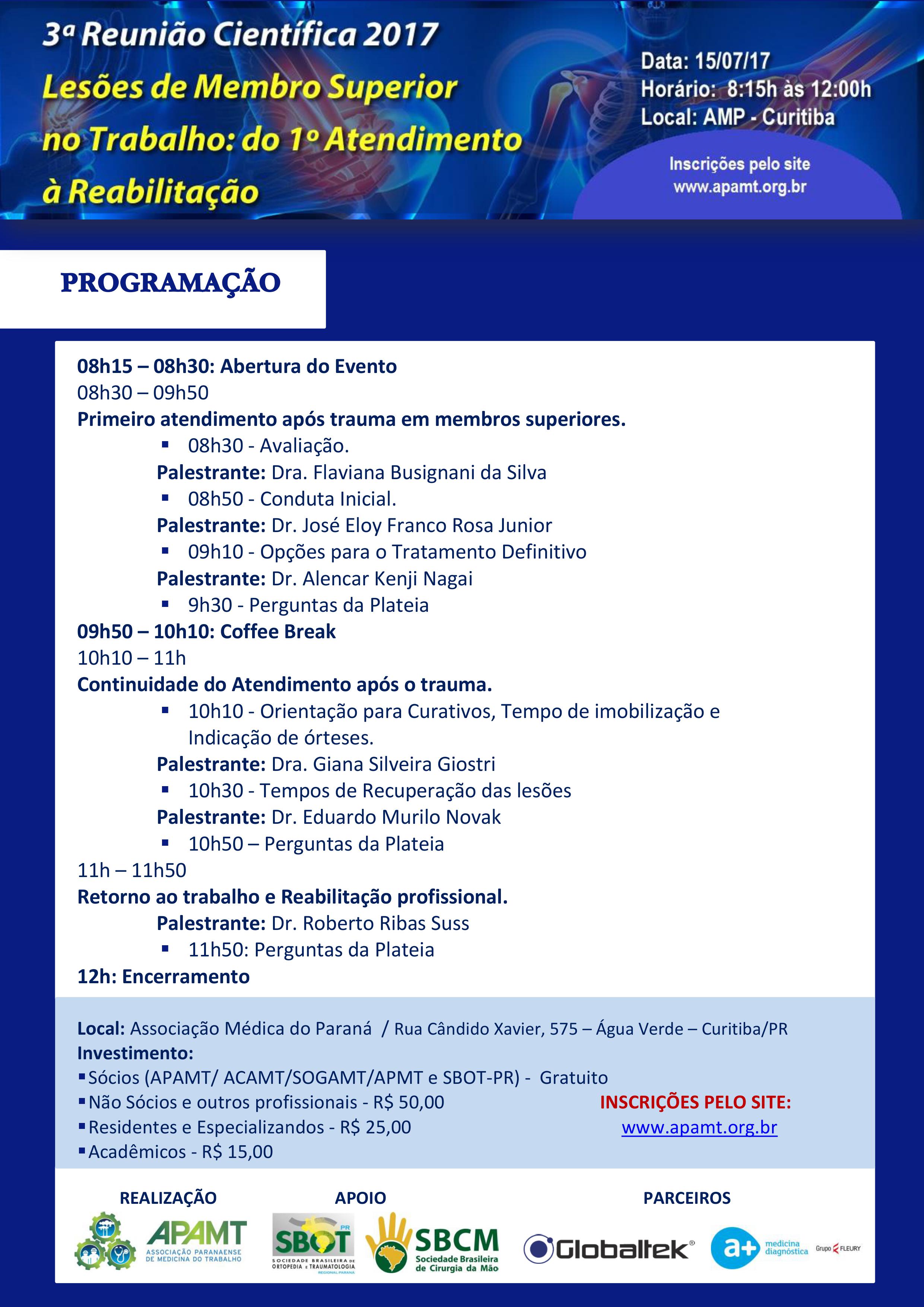 3ª Reunião Científica - Lesões de Membro Superior no Trabalho: do 1º Atendimento à Reabilitação