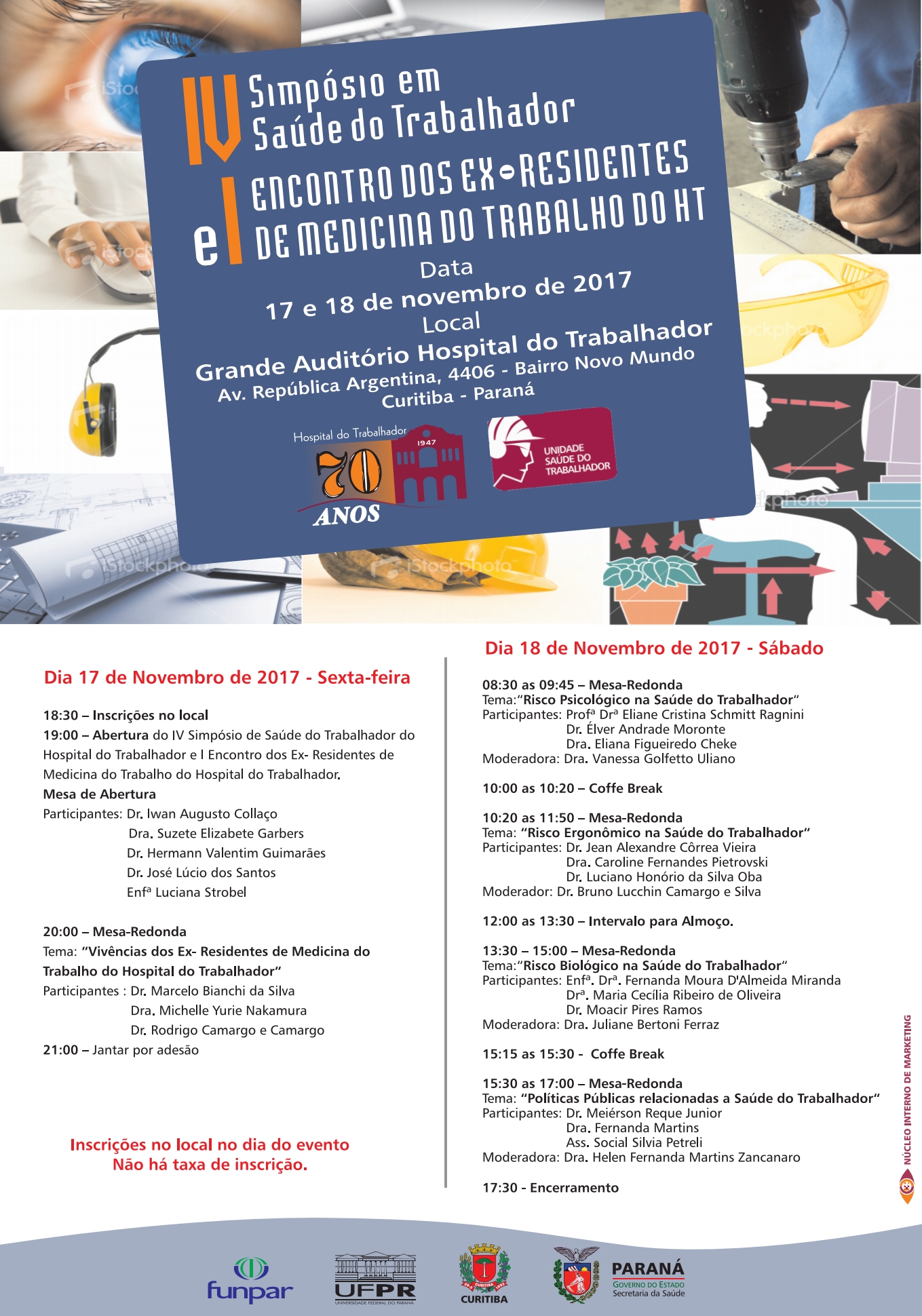 IV Simpósio em Saúde do Trabalhador e I Encontro dos Ex-Residentes de Medicina do Trabalho do HT