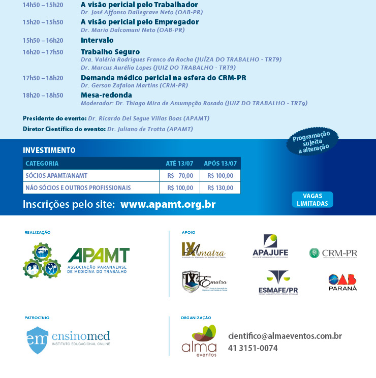 Evento APAMT - I Encontro Paranaense de Interfaces Periciais: Judiciária, Previdenciária e Trabalhista