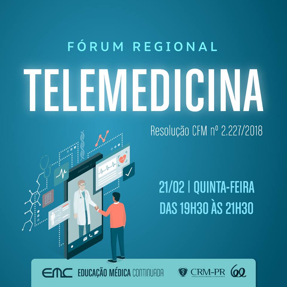 O Conselho Regional de Medicina do Paraná promove no dia 21 de fevereiro um fórum para debater e esclarecer os tópicos da Resolução CFM nº 2.227/2018, sobre a Telemedicina. Todos os médicos e estudantes de Medicina do estado estão convidados a participar, seja presencialmente ou via web, levando suas ponderações e sugestões de forma a contribuir para o aprimoramento do texto da Resolução. Participe! Saiba mais e faça sua inscrição.