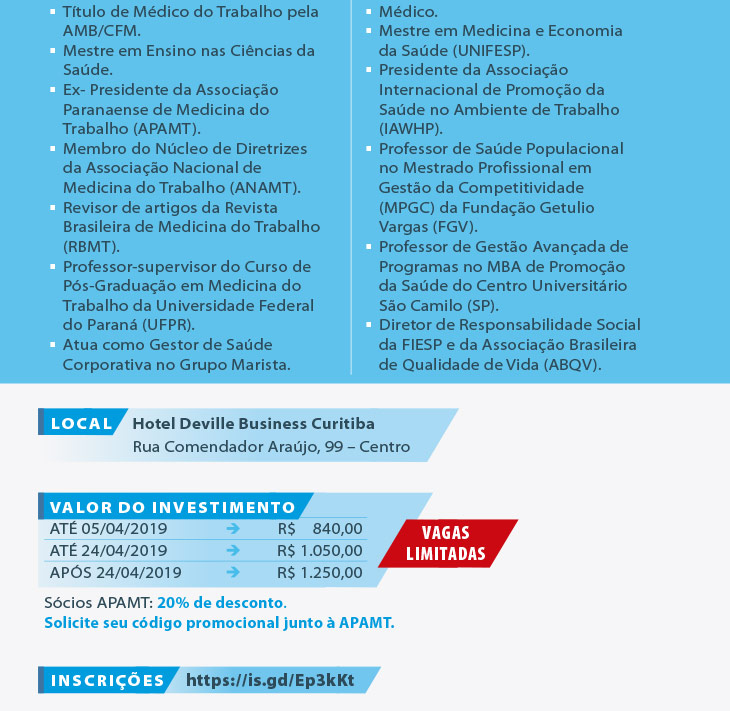 Com o objetivo de congregar os Médicos do Trabalho no Estado do Paraná e também com a intenção de estimular o interesse pela especialidade, sua divulgação e aperfeiçoamento; assim como defender a ética profissional, promover eventos, realizar estudos e manter o intercâmbio com outros colegas da área, foi fundada, em 2 de setembro de 1974... continuar lendo.