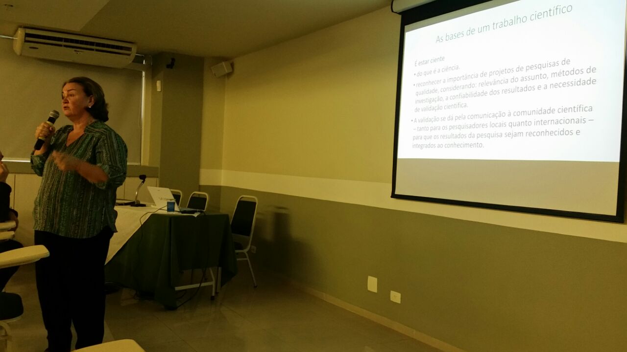 Ao enfatizar que os pesquisadores são produtores, mas também consumidores do conhecimento científico apresentado nas revistas, a Dra. Denise falou sobre a necessidade de se ter critérios de avaliação da qualidade desses artigos com a finalidade de selecionar o que é válido a ser incorporado ao conhecimento e prática profissional.