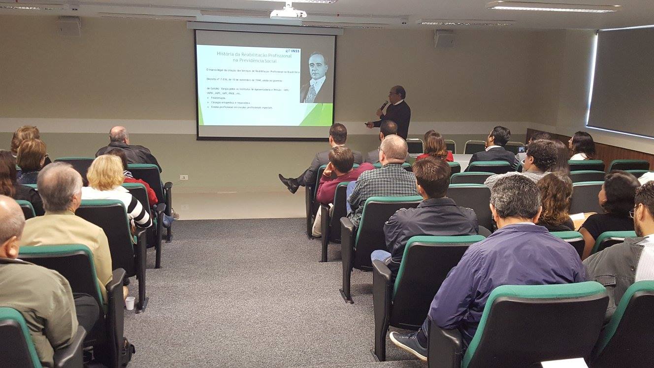 Retorno ao trabalho e reabilitação foi a terceira e última parte da aula e ficou a cargo do Dr. Roberto Ribas Suss, que atua como perito do INSS e analista do seguro social. Ele apresentou diversos cases sobre o tema.