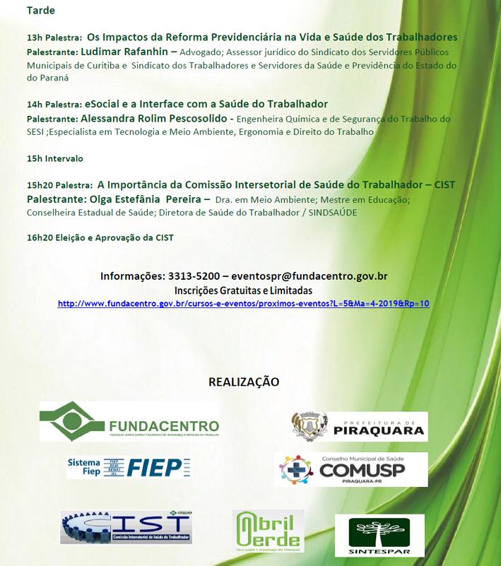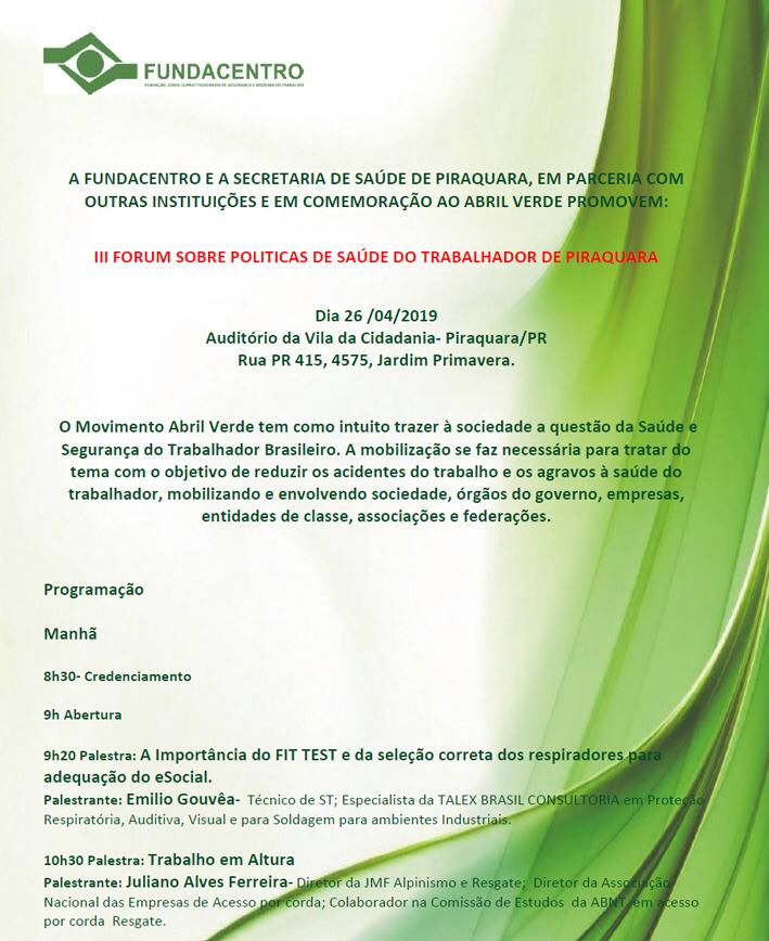 III FORUM SOBRE POLITICAS DE SAÚDE DO TRABALHADOR DE PIRAQUARA