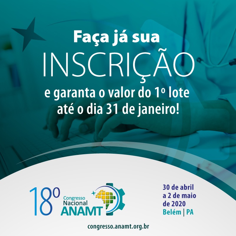 18º Congresso Nacional ANAMT: garanta sua inscrição no valor do 1º lote até 31/01