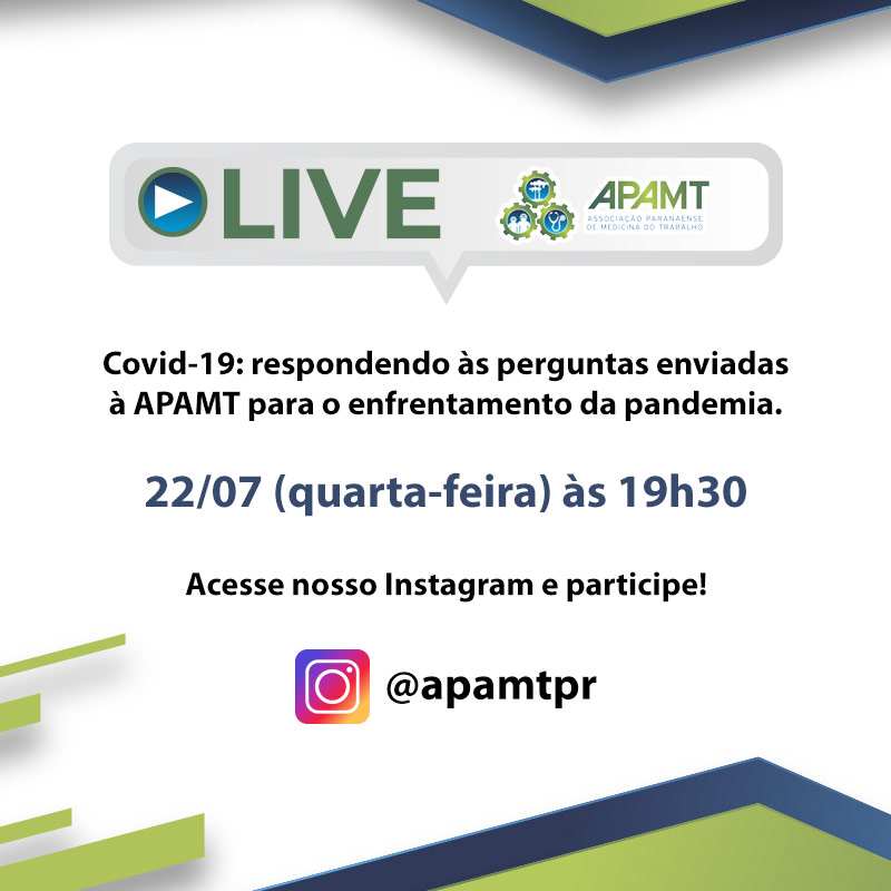 às 19h30, uma live em seu perfil no Instagram (@apamtpr) para responder às