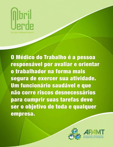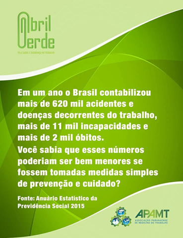 Em 2017 a APAMT optou por ações diferentes para o Abril Verde. O artigo do nosso presidente, Dr. Guilherme Murta, teve destaque com publicações na Gazeta do Povo, no site da ANAMT e também na fan page oficial do Movimento.