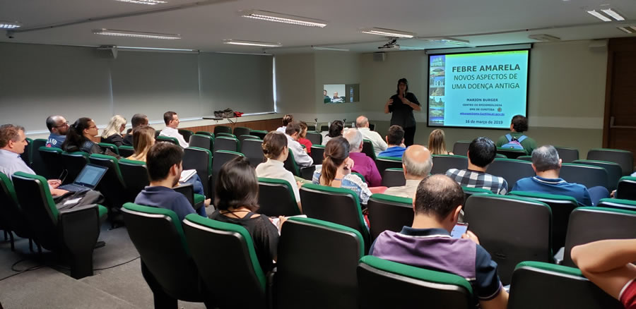 Febre Amarela e saúde do viajante foram os temas do Encontro Multidisciplinar promovido pela APAMT na manhã de 16 de março e que reuniu 47 participantes na sede da Associação Médica do Paraná. A primeira palestra do dia foi proferida pela Dra. Marion Burger, médica infectologista e Coordenadora de Agravos Agudos Transmissíveis do Centro de Epidemiologia da Secretaria Municipal de Saúde de Curitiba.
