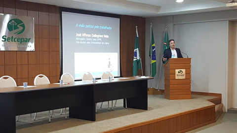José Affonso Dallegrave Neto, advogado, falou sobre a visão pericial pelo ponto de vista do trabalhador . Ele abordou a reforma trabalhista, que resultou em redução nas ações trabalhistas. "A nova legislação acabou com as aventuras jurídicas, o que foi positivo e pedagógico, porém acabou por espantar os trabalhadores que realmente têm um sofrimento e que agora têm receio de uma ação", ponderou. Dallegrave também citou os índices que tendem a aumentar nesse período pós-reforma, como o aumento da terceirização e a redução dos intervalos, e seu impacto na vida do trabalhador.