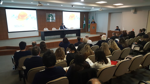 Os juízes do trabalho Valéria Rodrigues Franco da Rocha e Marcus Aurélio Lopes apresentaram o programa Trabalho Seguro, do qual são gestores no estado do Paraná, e que tem por objetivo investigar e propor soluções para o meio ambiente de trabalho com foco na promoção da saúde do trabalhador e prevenção de acidentes. "Nosso trabalho é colaborar com políticas públicas sobre SST, promover o diálogo social e institucional e a educação para a prevenção, assim como compartilhar de dados e informações para conscientizar", explicou a Dra. Valéria.