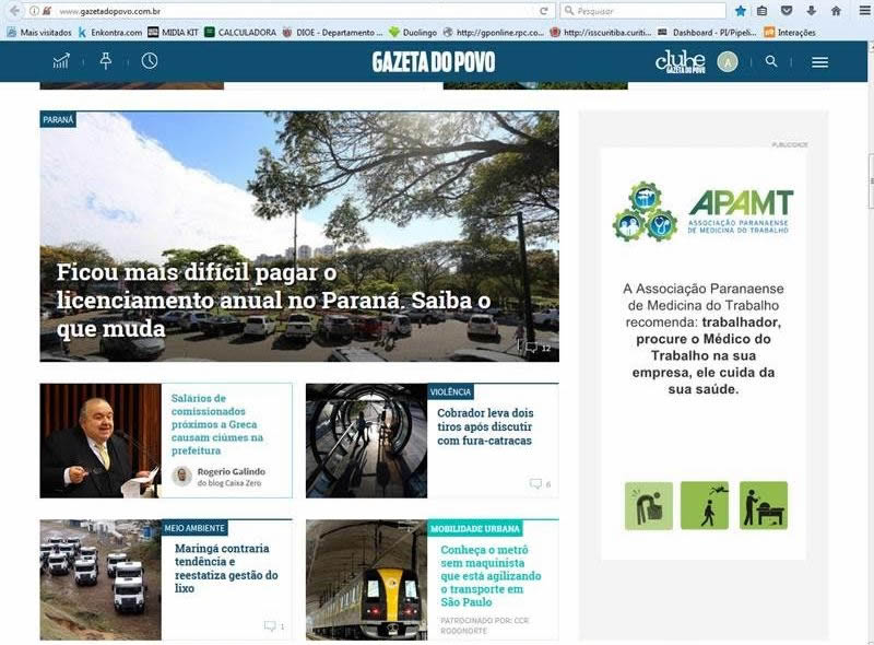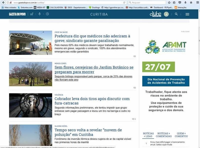 Confira a campanha promovida pela APAMT no site da Gazeta do Povo nos dias 26 e 27 de julho pela passagem do Dia Nacional de Prevenção de Acidentes de Trabalho